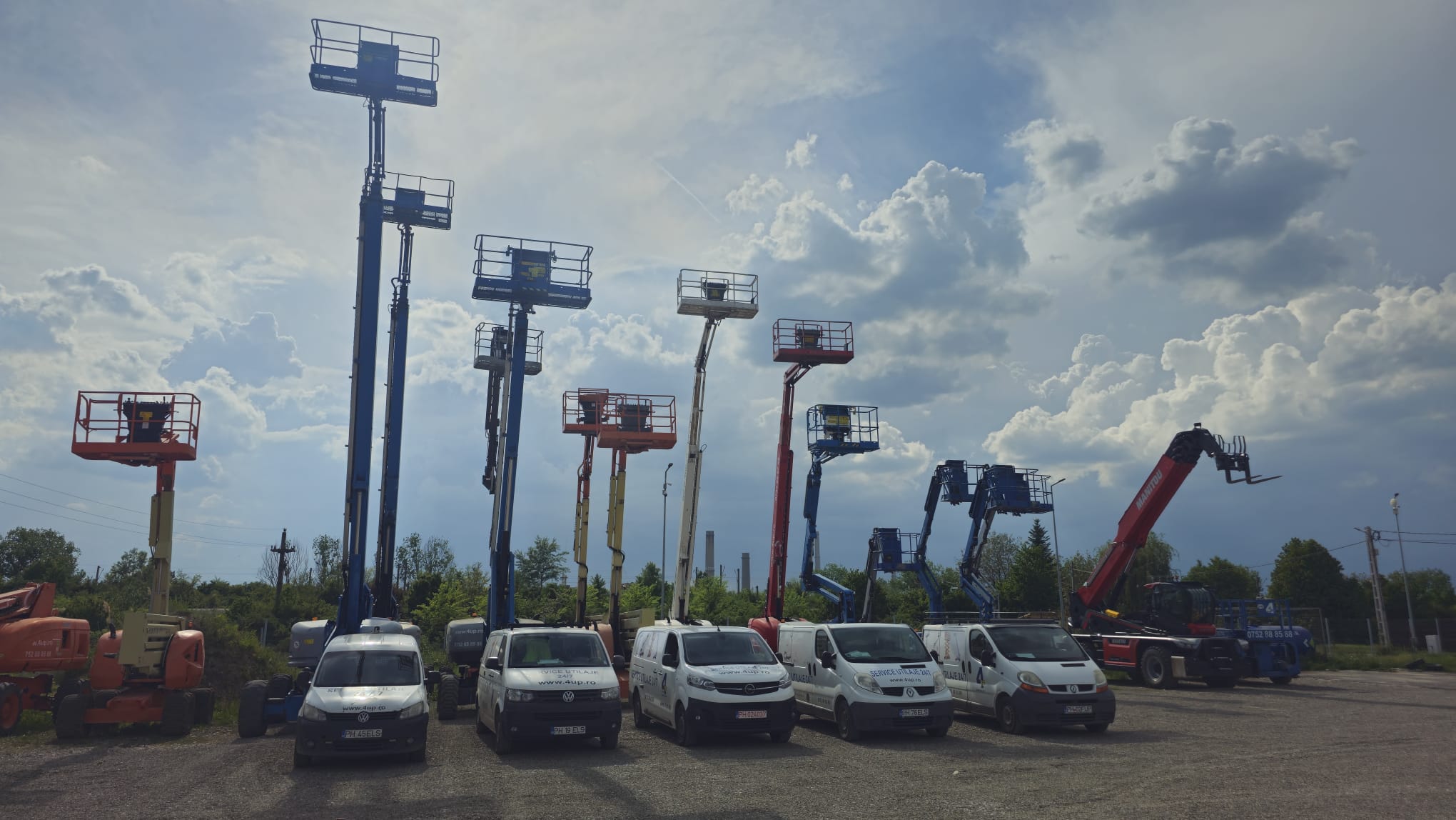 Dispunem de un parc modern de peste 400 de platforme elevatoare, gata să fie livrate rapid în București, Prahova, Dâmbovița, Ilfov, Brașov, Buzău, Ialomița.